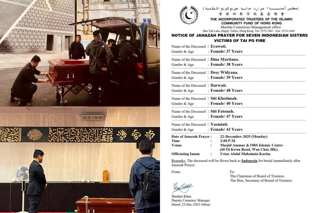 Sementara itu, informasi yang dirilis oleh Muslim Cemeteries Management, menyebutkan ada 7 jenazah PMI yang akan disholatkan pada Senin, 22 Desember 2025.