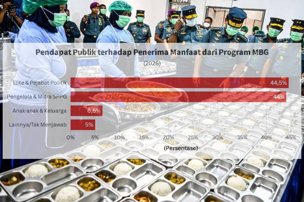 Berdasarkan data di atas, sebanyak 44,5% responden menilai program MBG justru menguntungkan para pejabat, partai, dan lingkaran kekuasaan sebagai penerima manfaat utama. Penilaian publik tersebut dipengaruhi oleh beberapa Satuan Pelayanan Pemenuhan Gizi (SPPG) dikuasai jaringan elite politik-ekonomi.