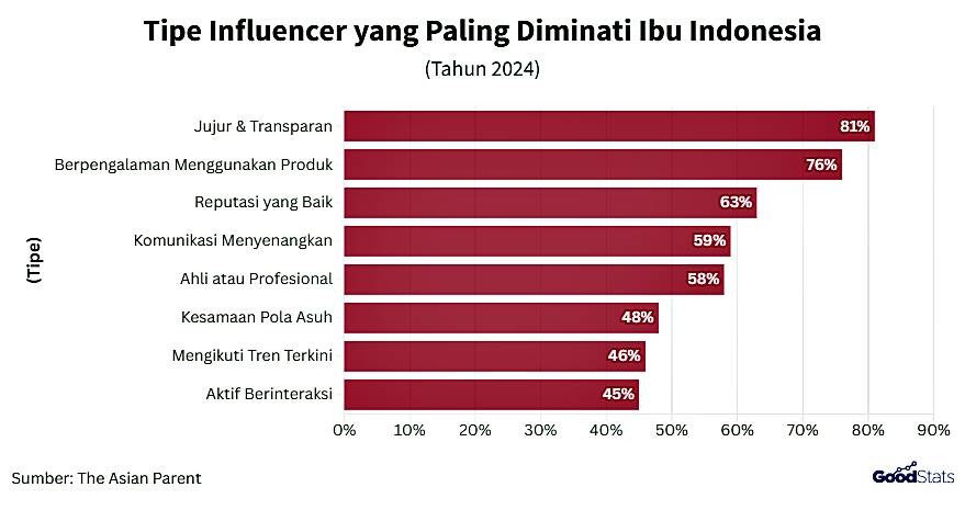 Hasil survei menunjukkan bahwa 81% publik ibu Indonesia lebih menyukai sosok influencer yang jujur dan transparan dalam mengulas suatu produk. Mayoritas ibu lebih tertarik pada pemengaruh yang mampu menjelaskan keunggulan produk secara transparan tanpa ada yang dilebih-lebihkan.